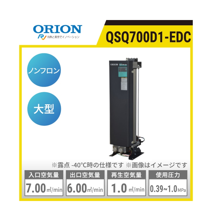 QSQ700D1-EDC オリオン機械 ヒートレス(吸着式)エアードライヤー | 省エネデラックスタイプ 露点:-40℃ 入口空気量:7.00㎥/min 出口空気量:6.00㎥/min 電源(50/60Hz):単相100~230