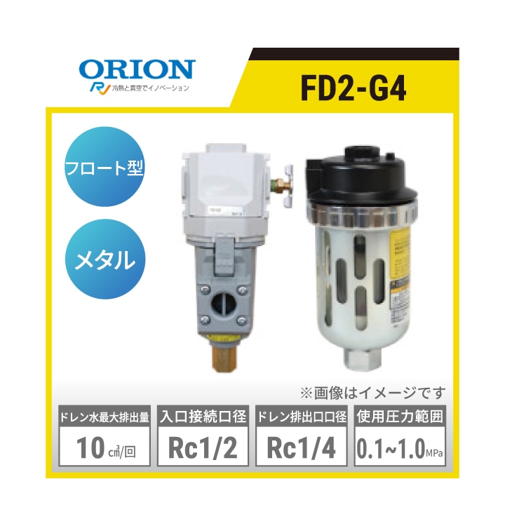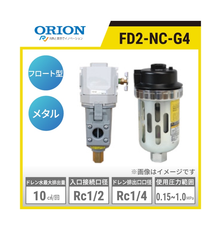 FD2-NC-G4 オリオン機械 機械式オートドレントラップ | フロート型 メタル NC仕様 最大排出量(ドレン水):10㎥/回 使用圧力範囲:0.1~1.0MPa 使用温度範囲:2~60℃