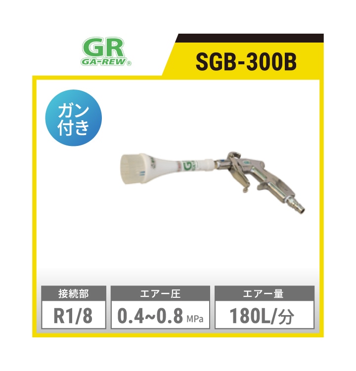 SGB-300B ガリュー 一般洗浄用ブラシガン | ガン付き エアー圧:0.4~0.8MPa エアー量:180L/分(0.5MPa時) 接続部:R1/8