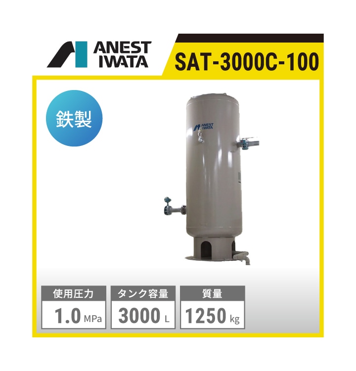 SAT-3000C-100 アネスト岩田 空気タンク | タンク容積:3000L 最高使用圧力:1.0MPa 質量:1250kg 鉄製