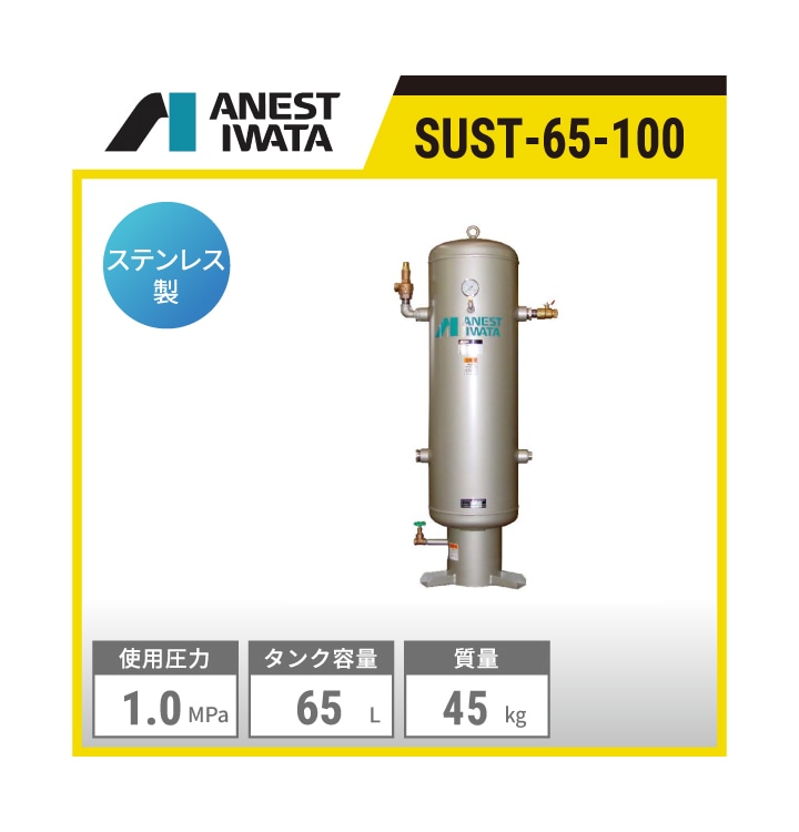 SUST-65-100 アネスト岩田 空気タンク | タンク容積:65L 最高使用圧力:1.0MPa 質量:45kg ステンレス製