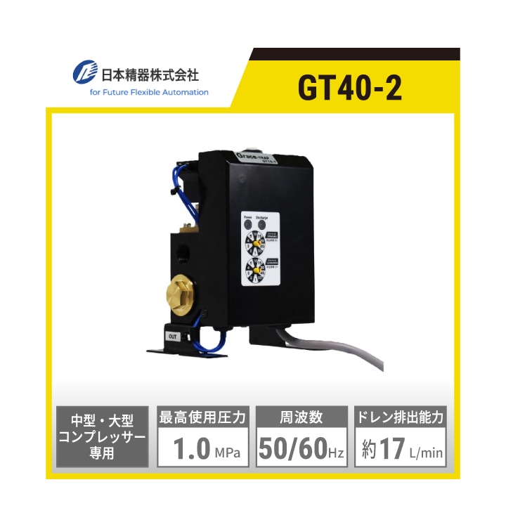 GT40-1 日本精器 ドレントラップ Grace-Trap | 標準仕様 中型・大型コンプレッサー用 最高使用圧力:1.0MPa ドレン排出能力:約17L/min(0.7MPa時) AC100V 50Hz/60Hz兼用