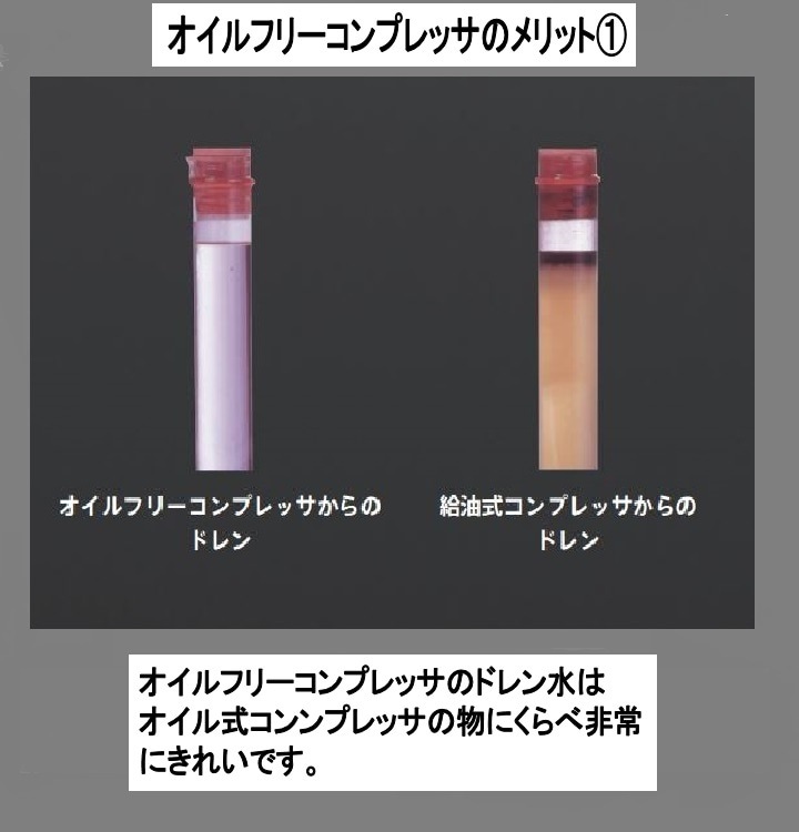 | フィルターによる油分除去は不確実で、実はオイル混入のリスクが存在します。アネスト岩田のオイルフリースクロールコンプレッサは、ISOクラスゼロを取得。確実にクリーンエアーを供給します。 |