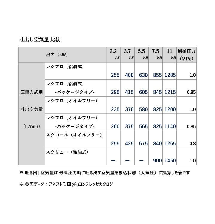 ・吐出空気量:1125L/min