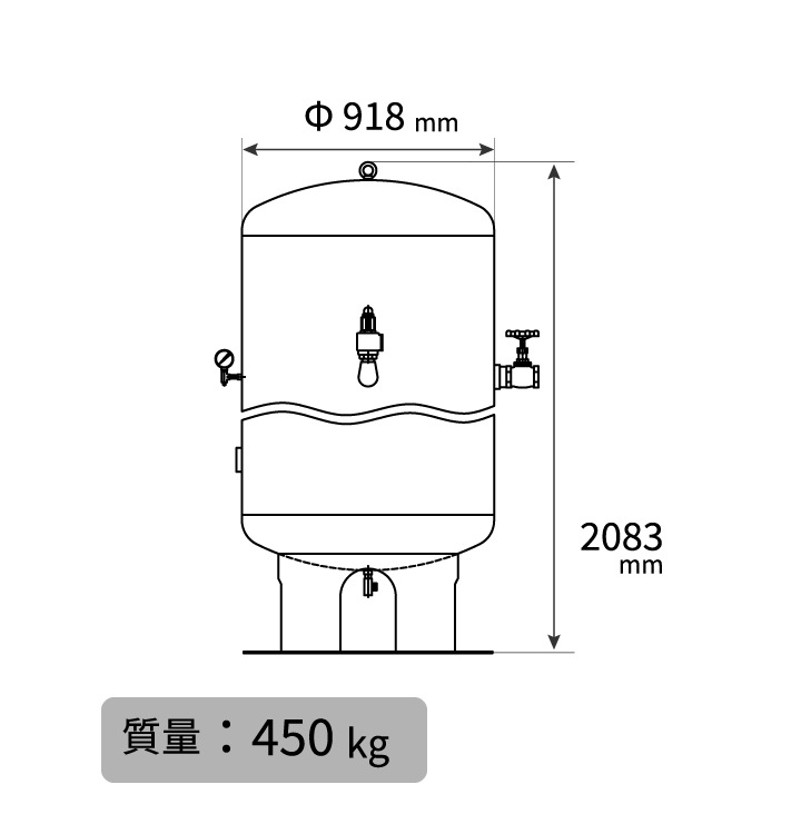 - 圧力を一定に保ったり、瞬時に大量の空気を使用する場合の補助タンクとして最適です。